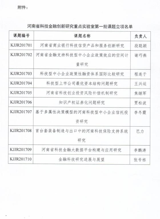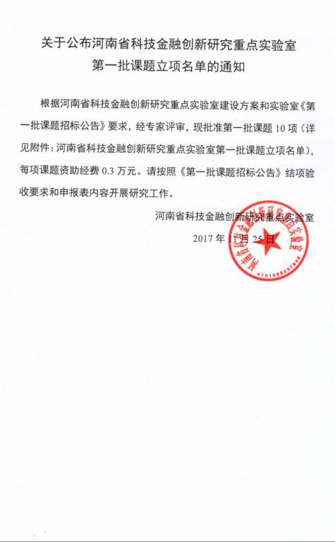 关于公布河南省科技金融创新研究重点实验室第一批立项课题名单的通知