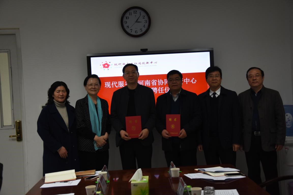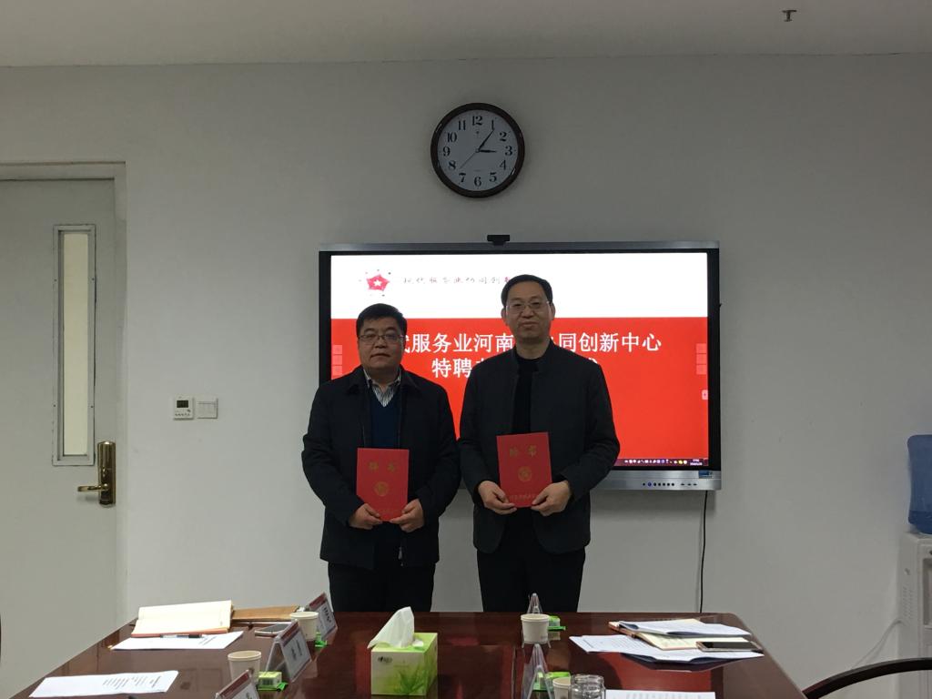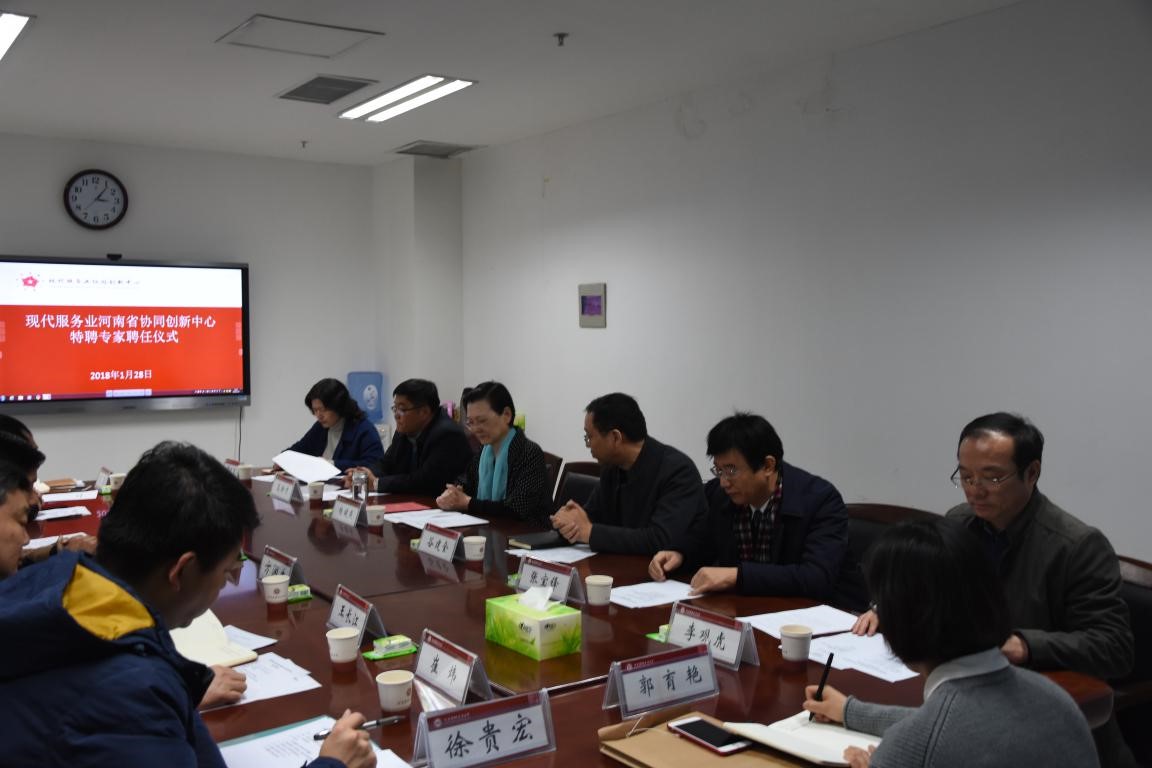 1月28日,现代服务业河南省协同创新中心特聘专家聘任仪式在我校郑东校区隆重举行。河南省政府发展研究中心主任谷建全、河南财经政法大学校长高新才、河南警察学院院长张宝锋出席聘任仪式。中心主任杨健燕、副主任李观虎副校长、副主任薛玉莲副校长、各研究机构负责人参加了聘任仪式。聘任仪式由中心执行主任薛玉莲主持。