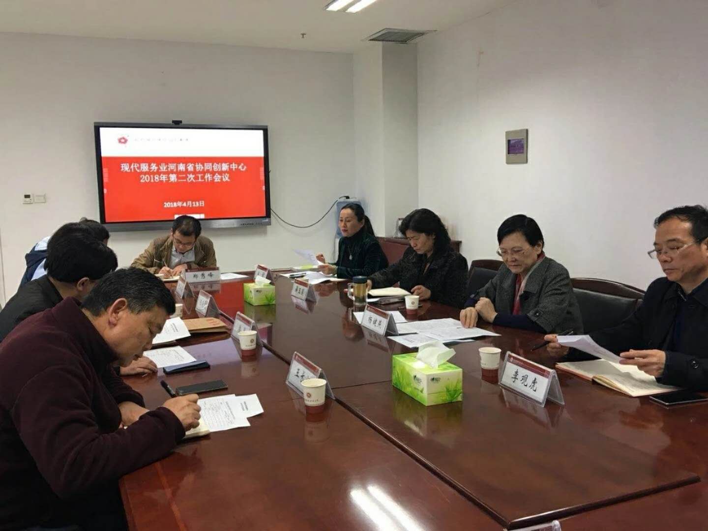 4月13日,现代服务业河南省协同创新中心在我校郑东校区召开2018年第二次工作会议。会议主题是明确中心工作目标,部署年度工作任务。会议由中心常务副主任薛玉莲副校长主持,中心主任杨健燕、副主任李观虎副校长以及各平台负责人出席了会议。