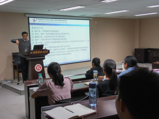 2017年5月6日上午,由河南财经政法大学、国家知识产权局专利局专利审查协作河南中心(简称“审协河南中心”)联办的“专利导航与专利未来发展”系列讲座第十次讲座在河南财经政法大学行政楼809报告厅举行。本次讲座的主题为《专利导航产业与创新研发》,主讲人为国家知识产权局专利局审协河南中心助理研究员赵艳辉。