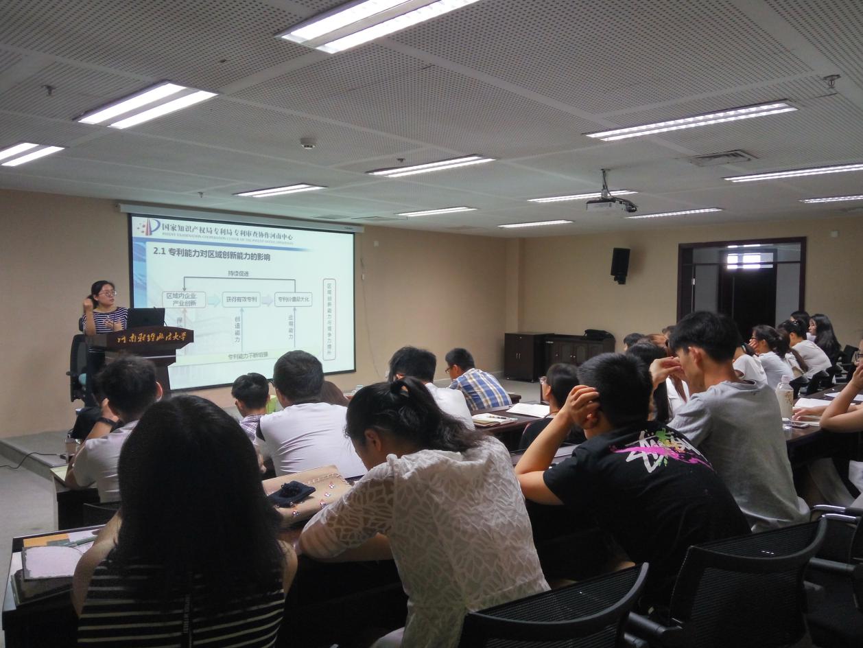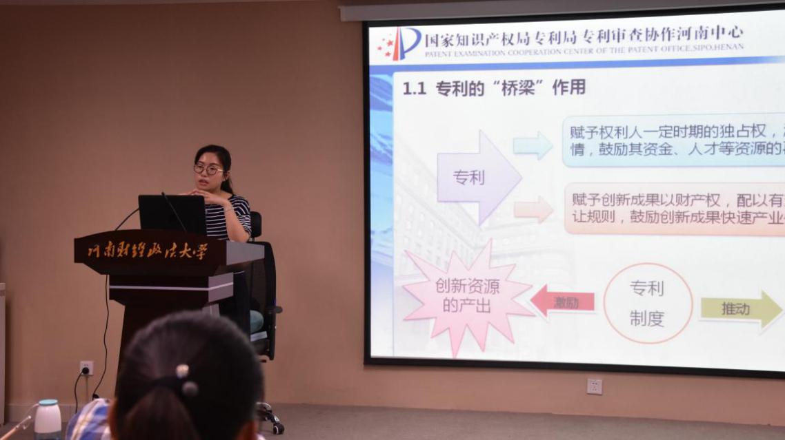 2017年5月13日上午,由河南财经政法大学、国家知识产权局专利局专利审查协作河南中心(简称“审协河南中心”)联办的“专利导航与专利未来发展”系列讲座第十一次讲座在河南财经政法大学行政楼809报告厅举行。本次讲座的主题为《专利导航产业与区域经济发展》,主讲人为国家知识产权局专利局专利审查员范晓。