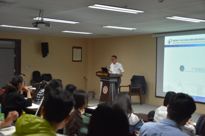 2017年4月22日上午,由河南财经政法大学现代服务业河南省协同创新中心、国家知识产权局专利局专利审查协作河南中心(简称“审协河南中心”)联办的“专利导航与专利未来发展”系列讲座第九次讲座在河南财经政法大学行政楼809报告厅举行。本次讲座的主题为《专利导航产业与实验区发展规划》,主讲人为国家知识产权局专利局审协河南中心助理研究员方磊。